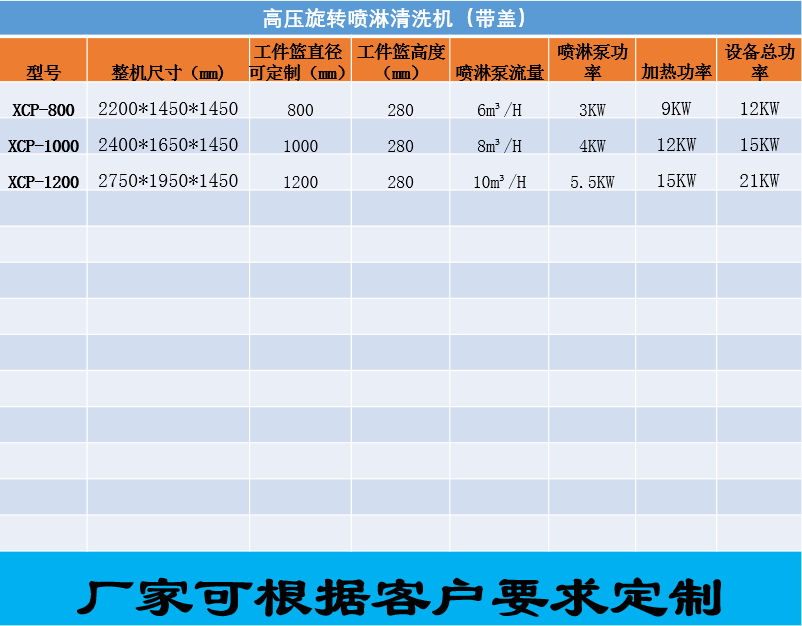 高壓噴淋清洗機利用高溫熱水在急速旋轉時產生的高壓射流和離心原理使樣工件內外表面污垢迅速剝落,達到徹 底清洗的目的。控制部分采用可編程序控制器,自動化程度高。是一種減輕工作人員勞動強 度,高 效節能,安 全環保的清洗設備。