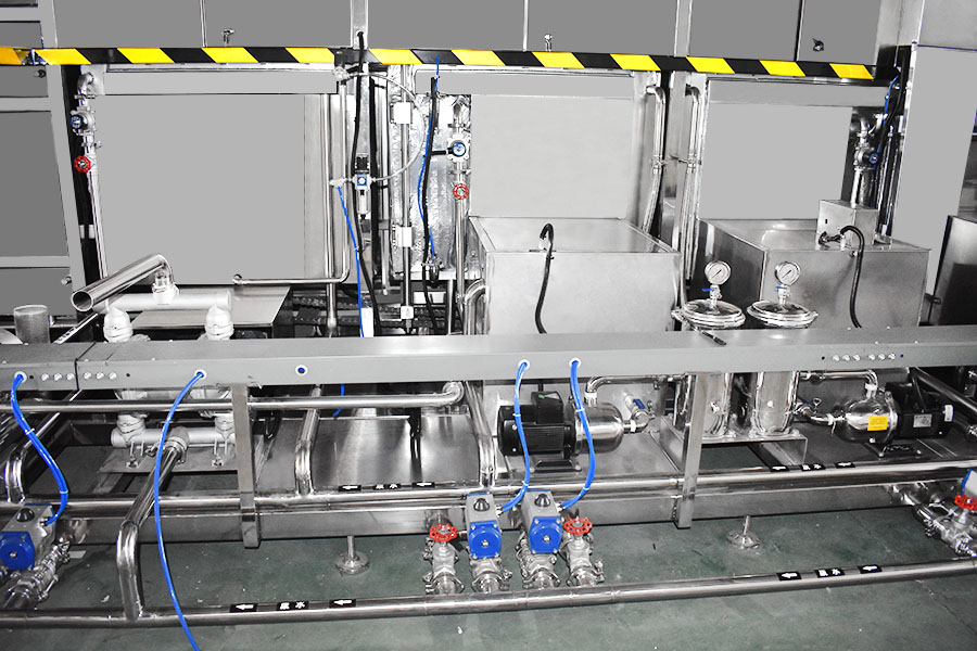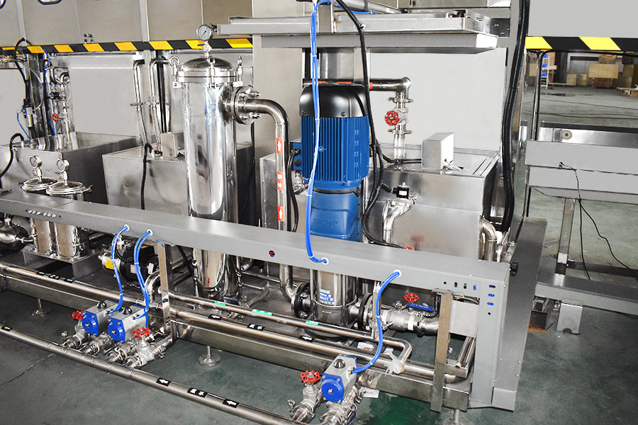 該設備有自動上下料及轉角系統、超聲波清洗系統,自動拋動、自動溢流和油污分離裝置,噴淋系統、自動高壓切水系統、自動烘干系統。機械手自動輸送系統采用高精度直線導軌配合高精度位置檢測傳感器,機械手可以準確的實現工件的抓取和放置。自動進排液和自動加溫系統完全實現了無人干預,自動運行,很大程度上降低了工人的勞動強度。先進的霧氣處理系統可以將清洗時產生的霧氣冷凝回流,空氣經過濾和活性炭吸附后排出。